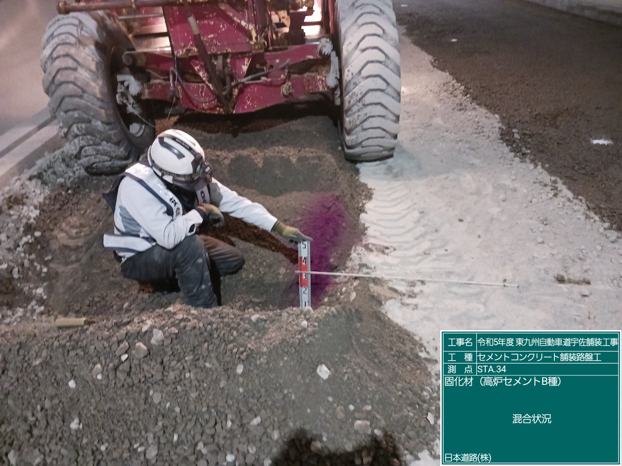 東九州自動車道(安心院IC~宇佐IC 間)新設及び拡張に伴う、セメント安定処理路盤改良工事です。